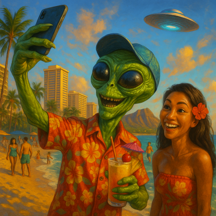 Hawaii’s skies have always sparked wonder. Ancient Polynesians navigated by stars, mastering celestial paths across the Pacific. Today, locals and visitors report mysterious lights above Waikiki and the North Shore. Are these UFOs scoping out surf spots or just drones gone wild? With Hawaii’s rich history of celestial reverence and its magnetic pull for global travelers, it’s no stretch to imagine aliens joining the party.