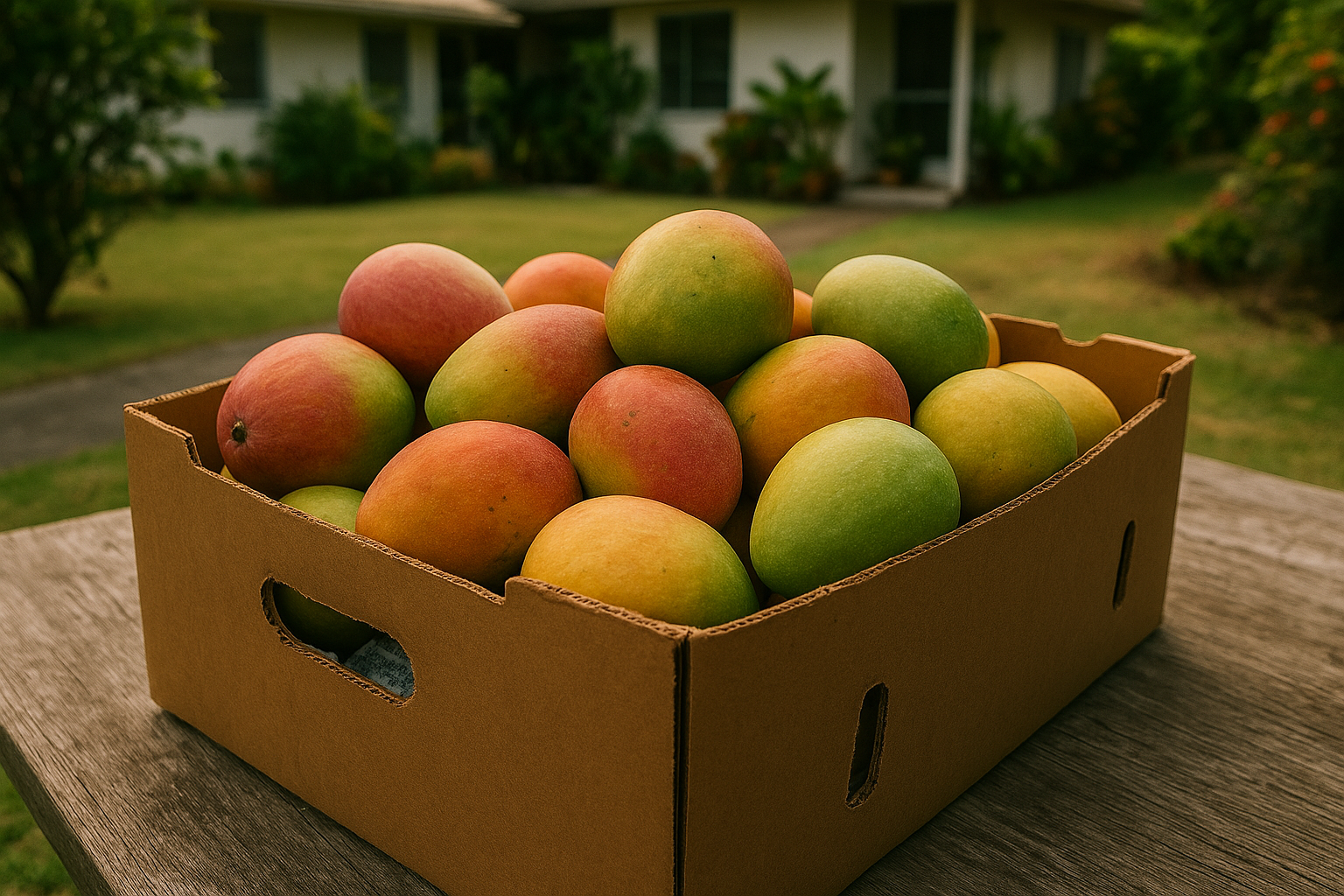 It usually starts with one uncle bringing a box to the office or neighbor’s house — the kind of old corrugated fruit box that once held long-gone pineapples. Before you know it, mangoes are everywhere: in Ziploc bags on the front porch, in random paper sacks left on car windshields, or stealthily dropped off at the gym’s front desk with a simple “Eh, somebody take.”